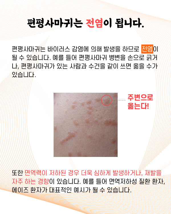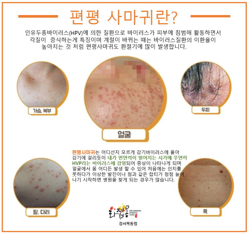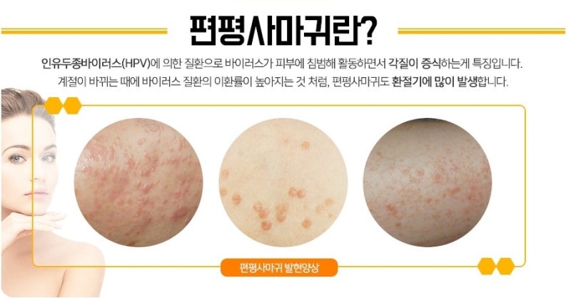 특히 발바닥 질환의 경우 티눈처럼 보이기 때문에 구분이 어려운 경우가 많다. 육안으로는 구분이 쉽지 않고 환부에 통증이 있으면 티눈으로 볼 수 있습니다. . 편평형 외에도 일반형, 손발바닥형, 수형 등의 종류도 있고, 일반형은 우리가 흔히 구진형이라고 부르는 것으로 볼 수 있습니다. 수형은 가려움증을 동반하며 주로 어린아이들에게 많이 나타나며 무의식 중에 환부를 긁으면 주변으로 쉽게 번져 흉터가 남을 수 있습니다.