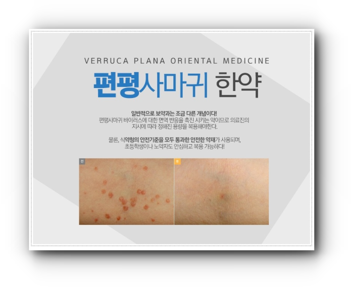 인체 내부의 무너진 면역체계를 바로잡고 재생을 촉진하며 소떼 깊숙이 편평사마귀의 원인이 되는 바이러스를 체외로 배출하는 것이 목표다. 그 감소와 호전이 오래 지속될 수 있기 때문에 가끔 여유를 갖고 싶다면 손으로 피부 밖의 병변을 제거하거나 손톱깎이, 족집게, 송곳 등을 이용해 긁어내는 방법도 있지만 이것은 좋은 방법이 아닙니다. 내부적으로 완전히 제거하지 않으면 남아있는 바이러스는 점점 더 깊이 파고들어 범위가 확장되고 점점 강해지고, 주변으로 쉽게 퍼집니다. 즉, 바이러스를 깊숙이 밀어내야 하는데, 이러한 증상이 나타난다는 것은 몸 전체의 면역력이 약해진다는 뜻이기도 하며, 이것이 목동 편평사마귀의 원인입니다. 그래서 눈에 보이는 부분만 일시적으로 제거하더라도 잔류 바이러스 때문에 언제라도 어떤 형태로든 다시 마주해야 한다. 따라서 세균과 바이러스에 대한 신체의 저항력을 강화하는 것이 중요하며, 방어력이 약해지면 작은 자극에도 쉽게 반응하여 증상을 일으키게 됩니다. 이러한 점을 개선하기 위해 환자의 상태나 호전 정도에 따라 한약침, 침, 반창고, 외용제 등 다양한 외용법을 적용하여 사용한다. 이때 중요한 부분은 피부와 병변이 명확하게 분리되어야 하며, 관리가 진행됨에 따라 눈꺼풀과 같은 정상 조직에서 박리되어 분리되는 과정이 확인됩니다. 또한 면역력을 높여 자기방어력을 더욱 강화하고 목공편평사마귀를 일으키는 바이러스를 반복적으로 내뿜는 과정을 거쳤다. 15일마다 증상 호전과 변화에 따라 새로운 처방을 처방해 면역력 강화에 도움을 주고, 3초만에 의사소통 기능 회복, 내분비 기능 회복, 대사순환 기능 정상화 등의 효과가 있다고 설명했다. 순환, 소화, 배설 등 신체의 여러 기관이 정상적으로 기능하고 서로 좋은 역할을 합니다. 우리 몸의 모든 장기는 유기적으로 연결되어 있기 때문에 각 장기가 제대로 기능해야 합니다. 그러나 어느 한 군데에 문제가 생기면 전신의 균형이 무너져 컨디션과 면역력이 떨어지고 세균에 대한 방어력도 떨어지게 된다. 바이러스도 증가했습니다. 이것이 잃어버린 것입니다. 그렇기 때문에 우리는 단순히 외적인 것에만 집중하는 것이 아니라 몸 속까지 건강하게 가꾸는 것이 중요함을 강조함과 동시에 그렇게 해야 합니다. 동시에 한방 성분으로 만든 한방 연고와 된장수, 세럼 등 피부 재생 촉진과 치유 증진에 효과적인 한방 외용제를 사용했습니다. 증상이 의심되는 경우 적절한 대책을 세워 주의를 기울이는 것이 가장 좋습니다.