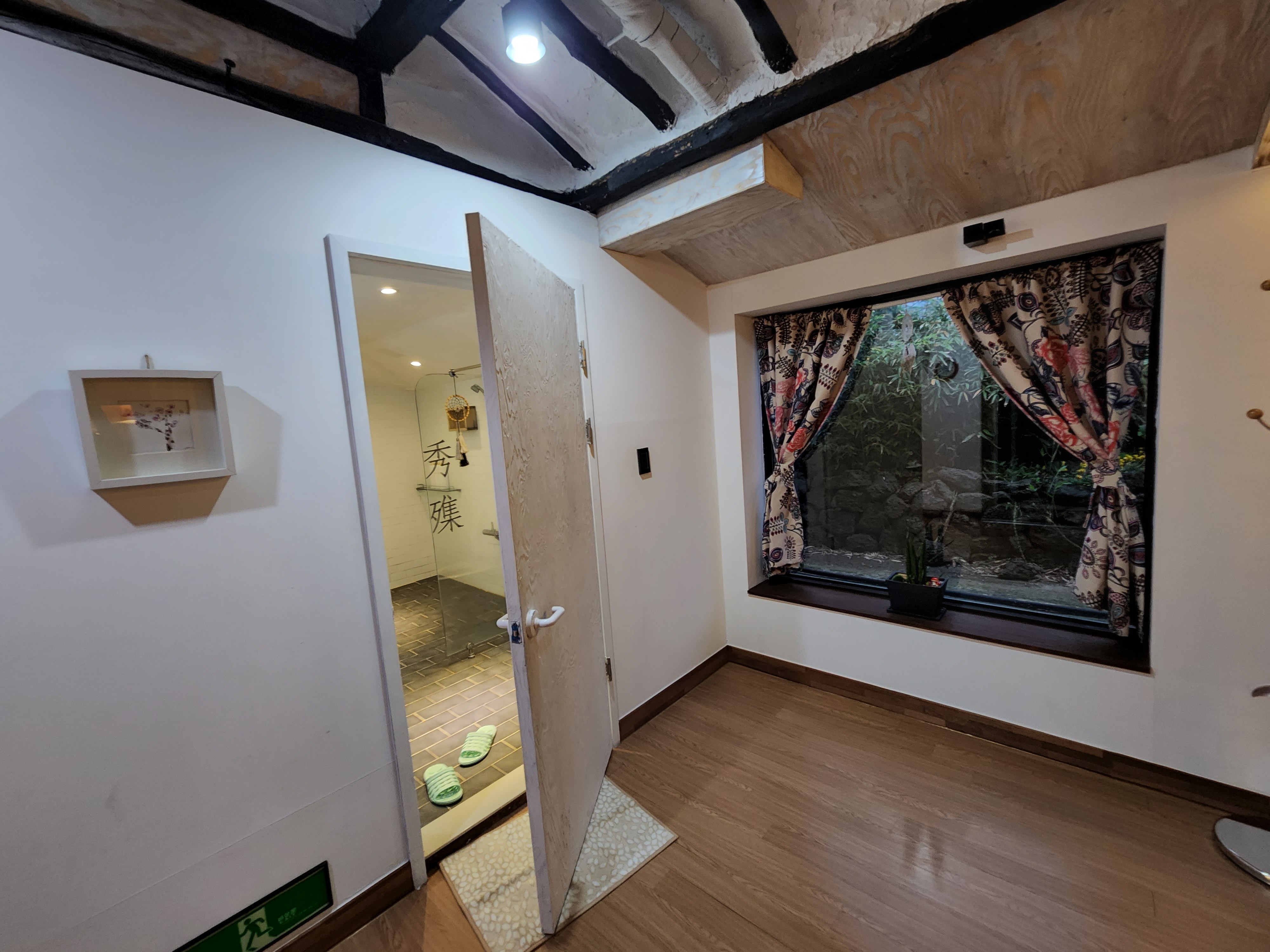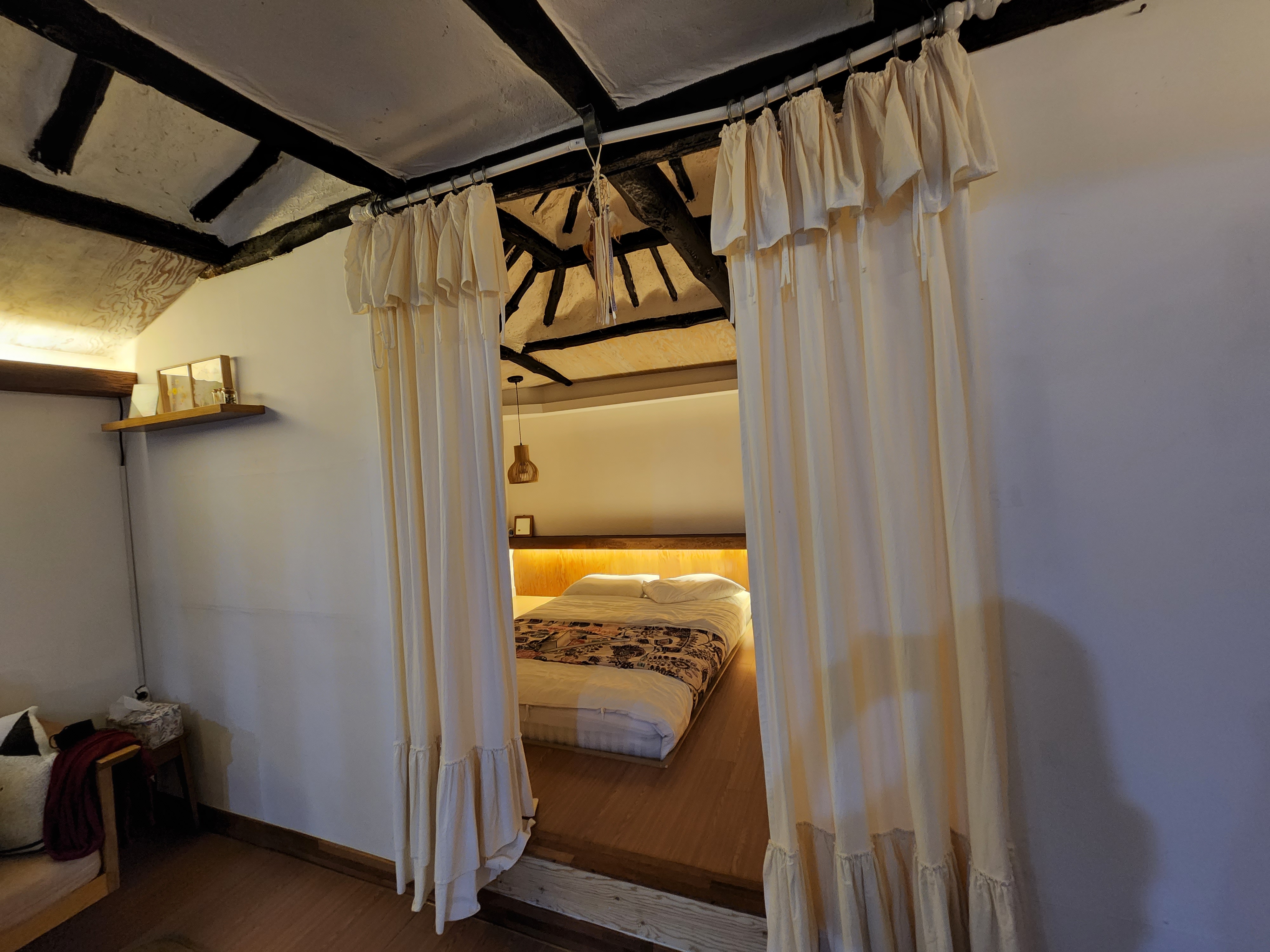 바닥을 뚫은 침대와 천정이 멋진 방이였어요 저희는 이 방을 이용했어요^^