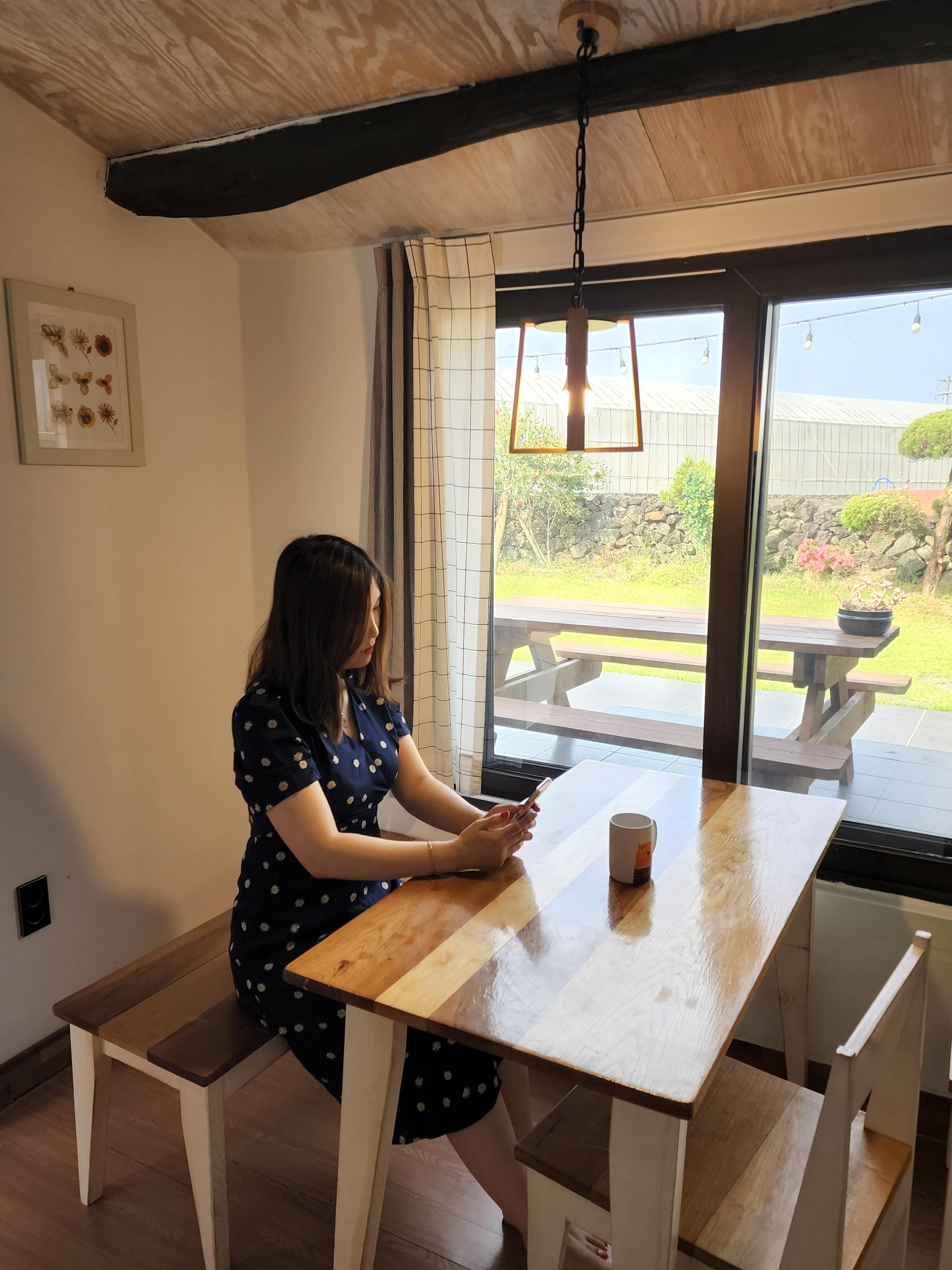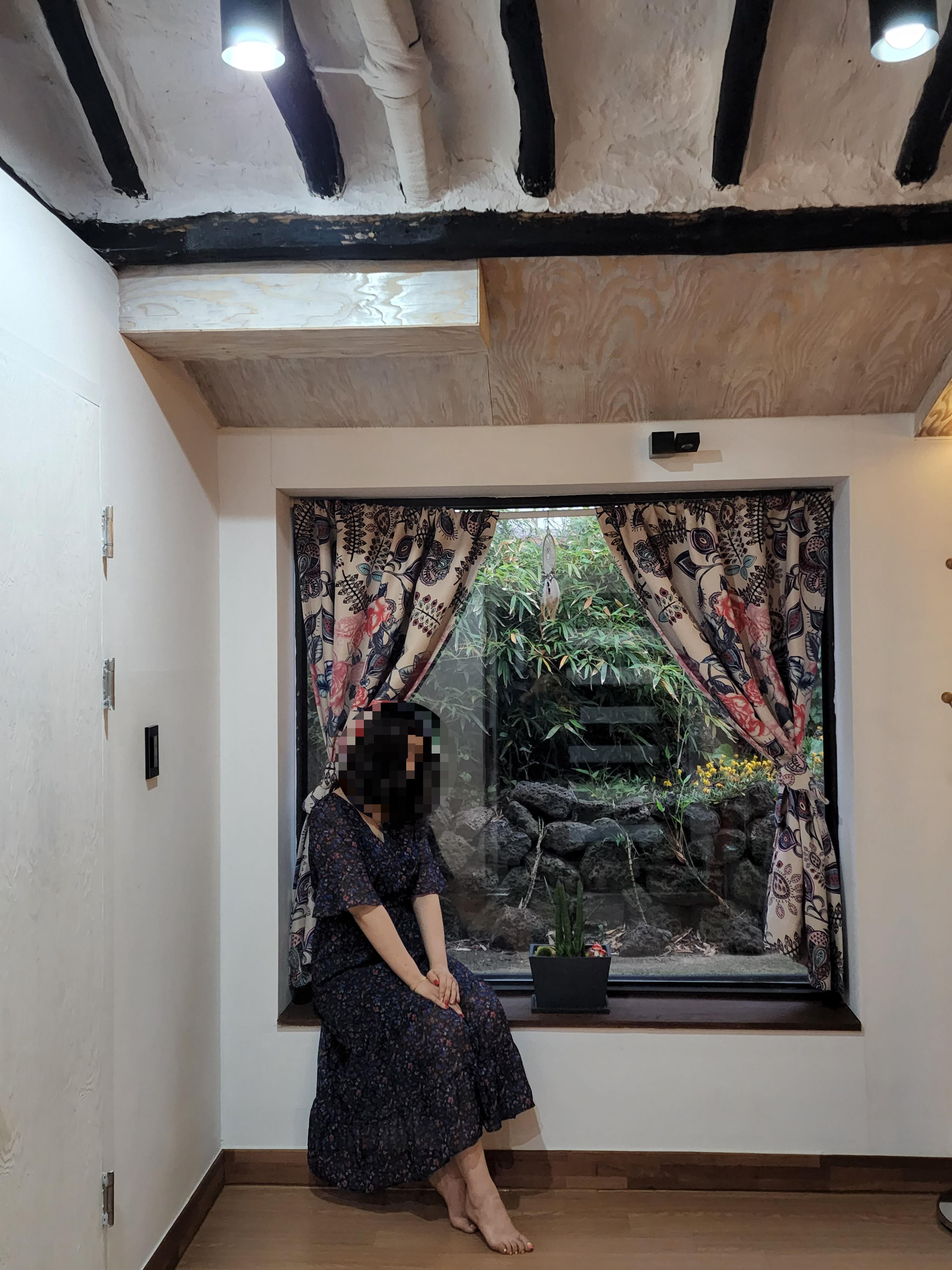 창밖으로 보이는 돌담을 배경으로 너무 예쁜 포토존이었어요.