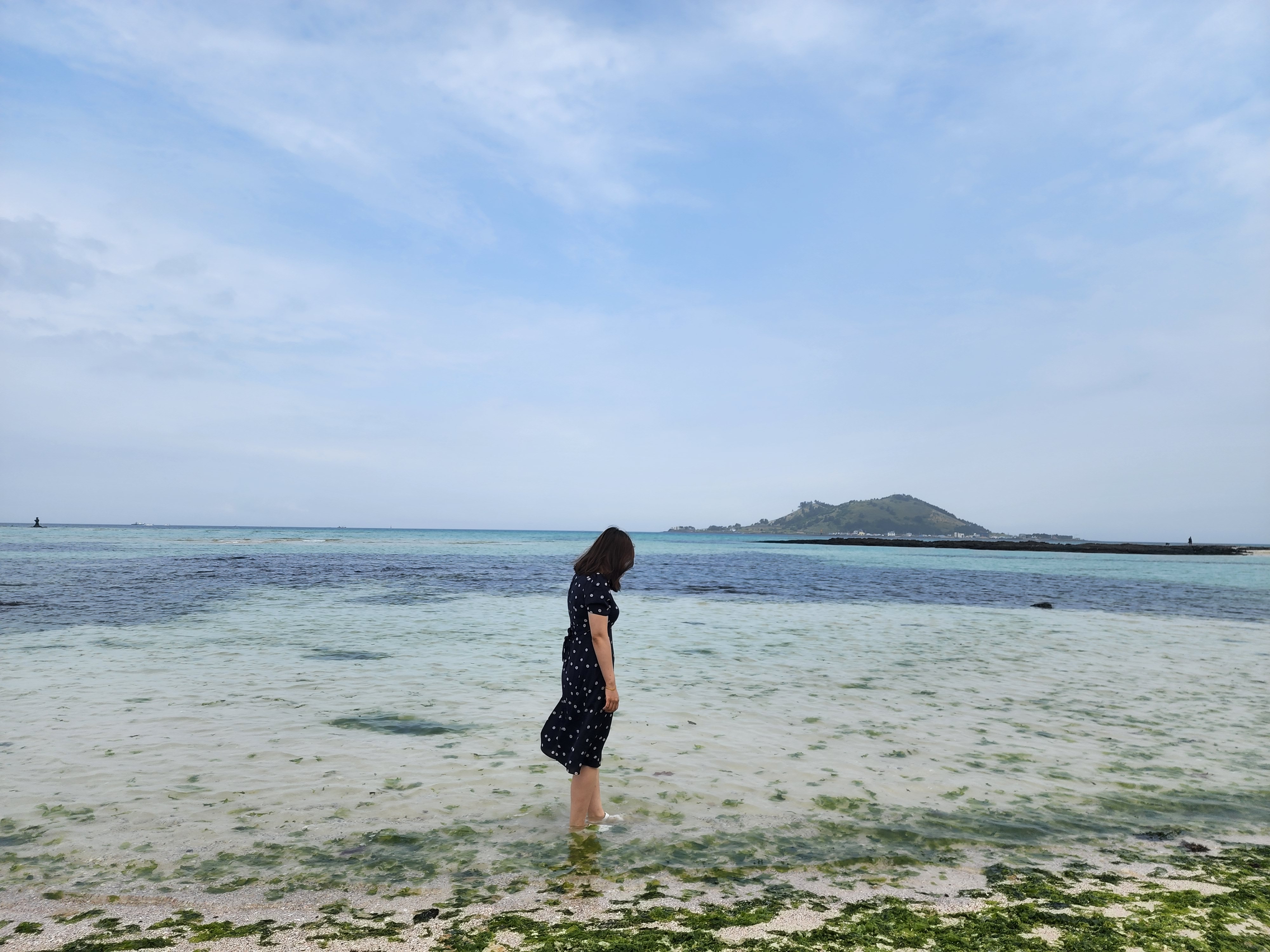 아침 먹으러 협재해수욕장 가는중~ 협재해수욕장은 해초가 듬뿍 들어있어 넘 예뻐요~~