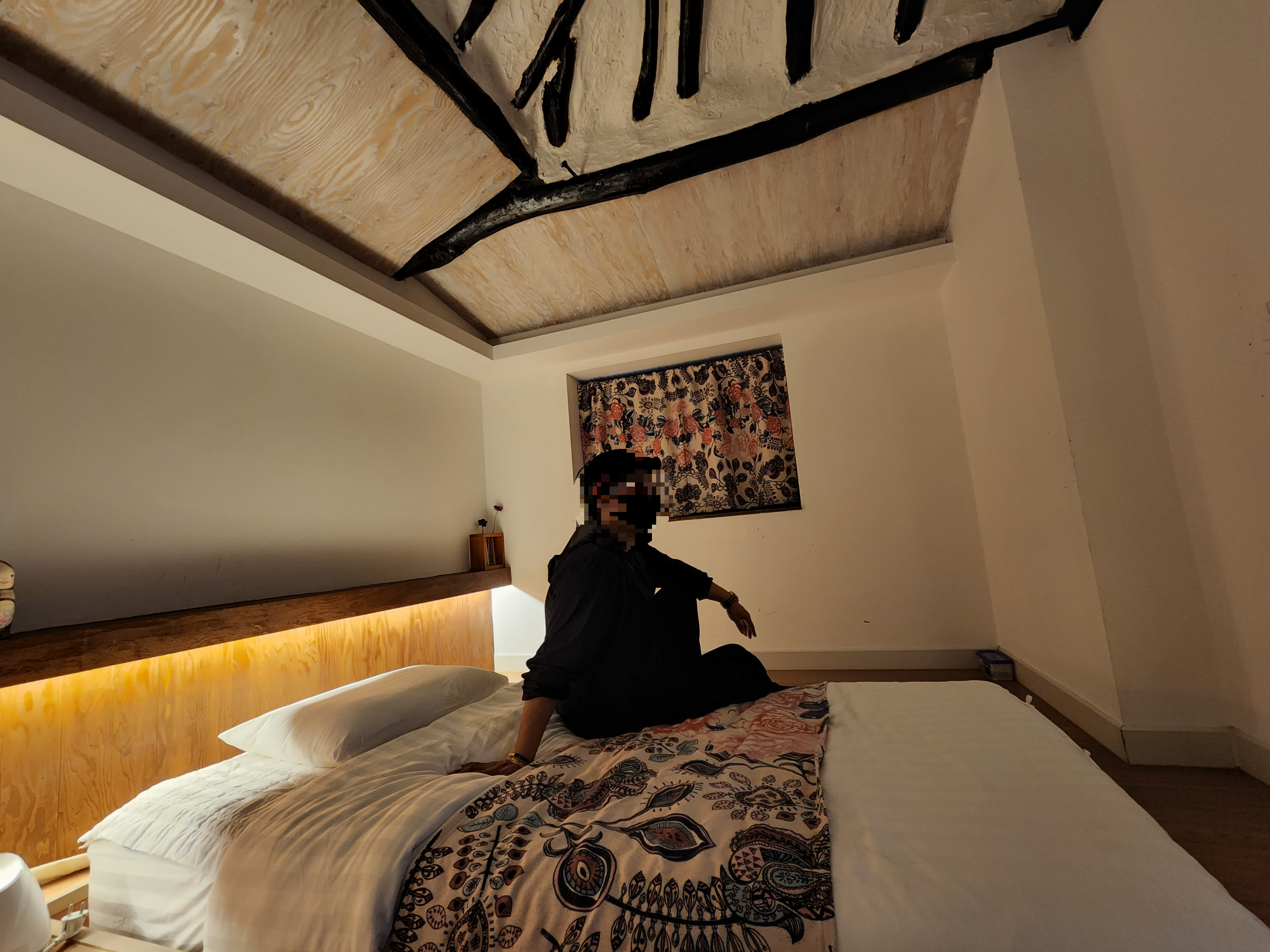 바닥을 뚫은 침대와 천정이 멋진 방이였어요 저희는 이 방을 이용했어요^^