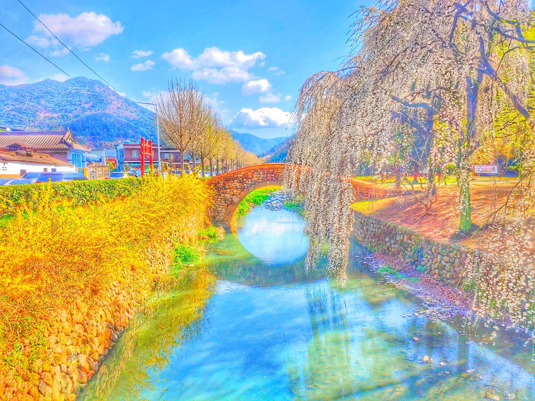 만년교는 남쪽에서 영산마을로 들어가는 관문 역할을 했다. 원래는 목조 다리였으나 홍수로 유실되고 심하게 파손되어 나중에 화강암으로 재건되었습니다.