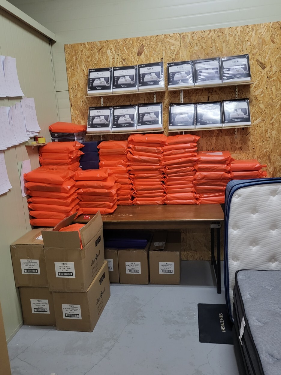 여기 키 큰 사람들은 침대 매트리스를 주문합니다