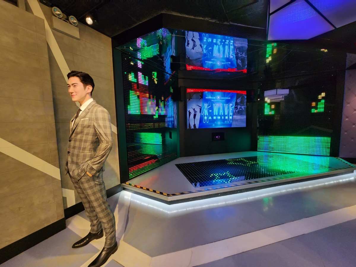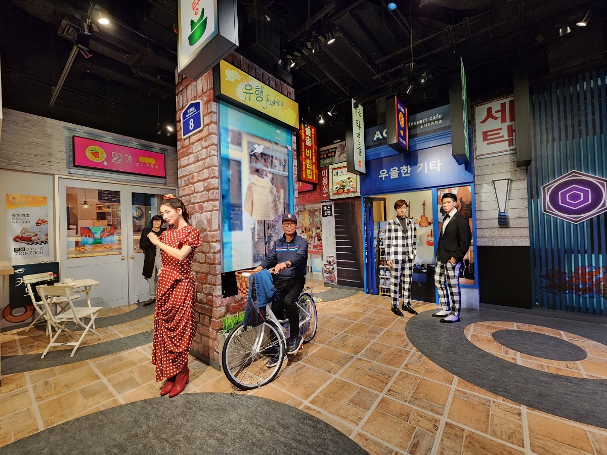 한국관에는 한국을 찾은 관광객이라면 둘러봤을 법한 카페와 거리가 있었고, 배용준을 비롯한 일부 배우들의 모델도 있었다. K-POP 스크린이 설치되어 있고 한국 노래를 들을 수 있어서 좋았습니다.
