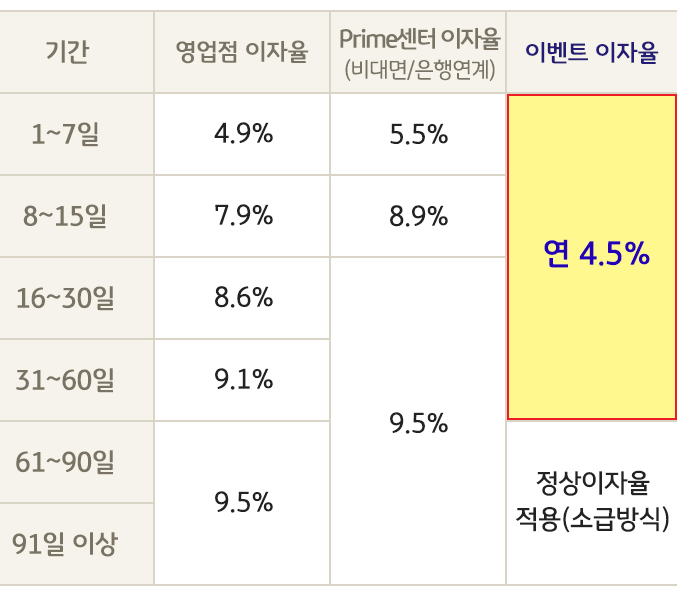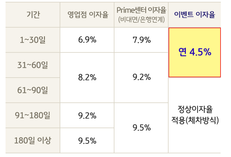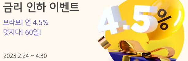 이벤트 신청 후 다음 영업일부터 60일 동안 연 4.5%의 신용/대출 금리가 부과됩니다.