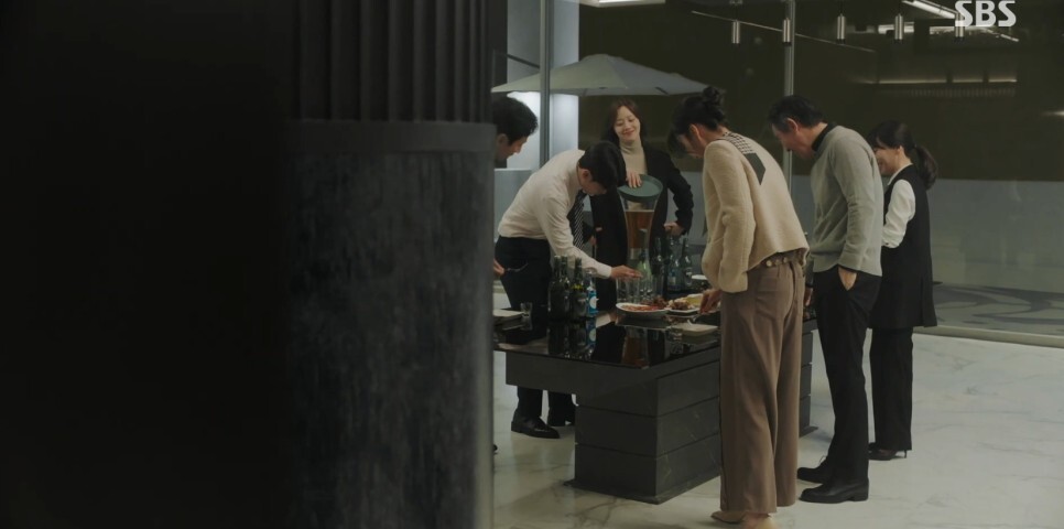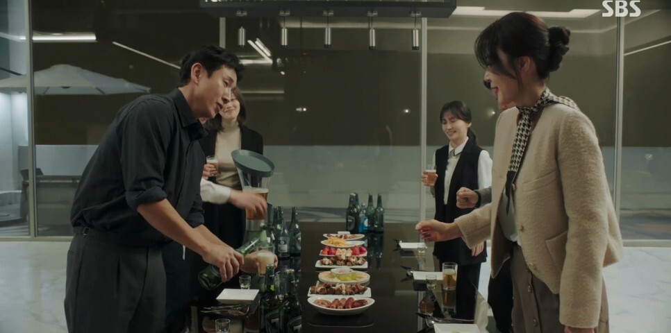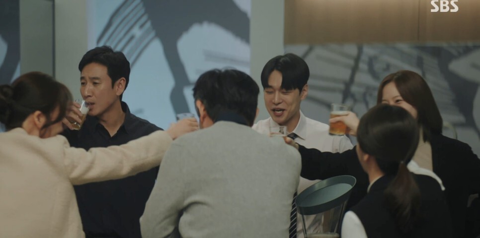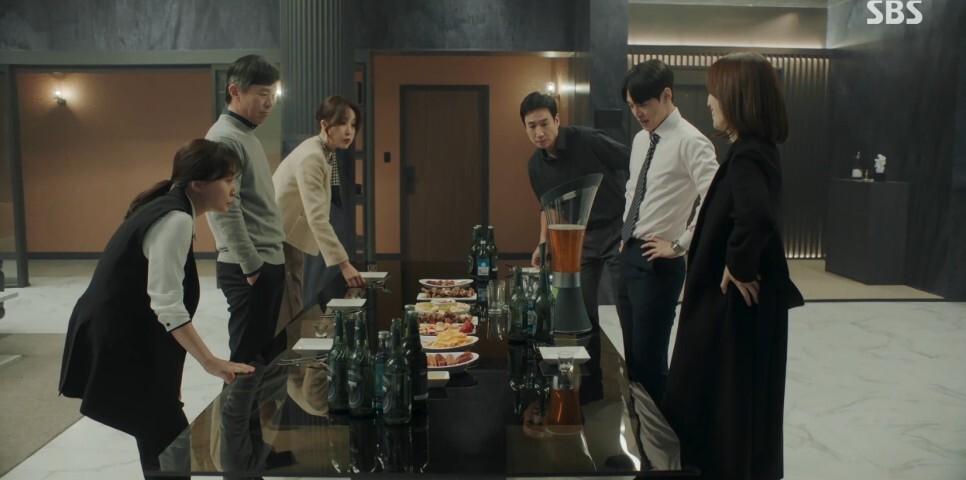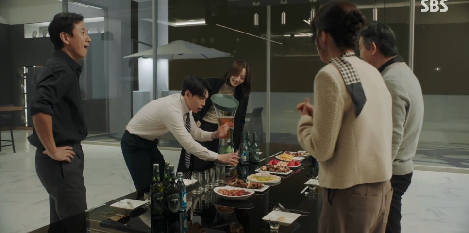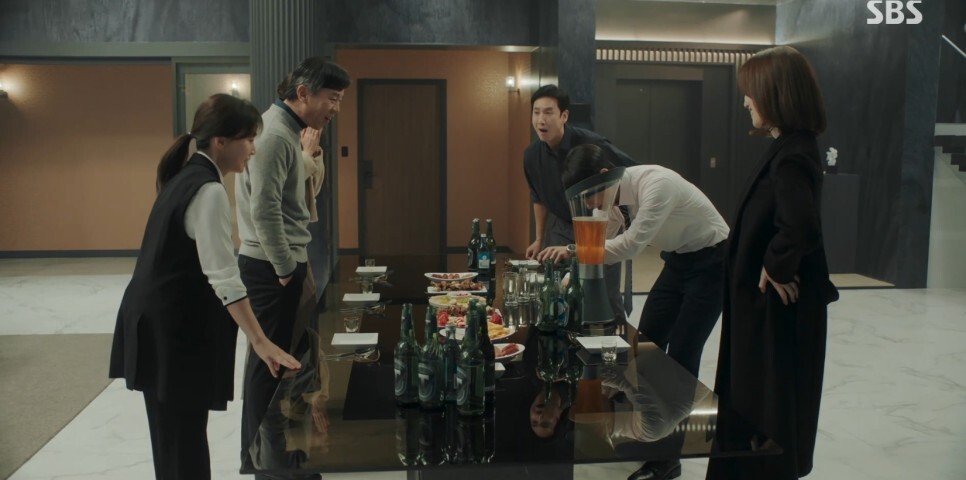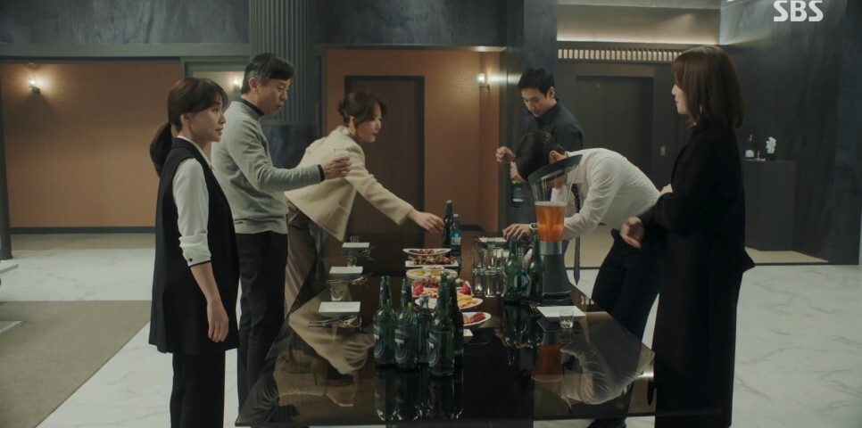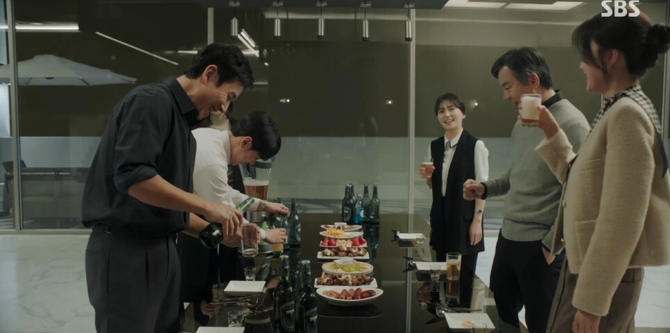 이들은 명 회장과 황 검사의 기나긴 공방을 축하하기 위해 모였다.