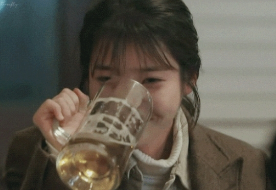 특히 아이유에게 거품 가득한 맥주를 붓는 것과는 반대로-